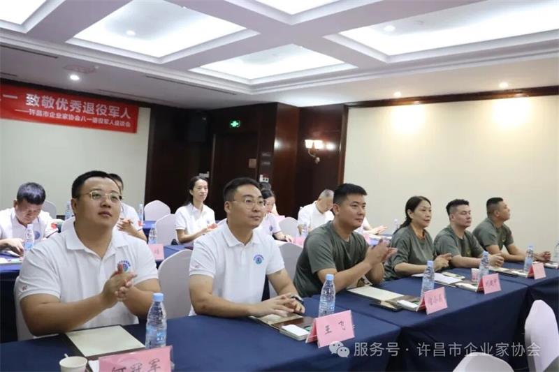在“八一”建軍節(jié)來(lái)臨之際,為弘揚(yáng)軍人精神,表彰優(yōu)秀的退役軍人,7月27日上午,許昌市企業(yè)家協(xié)會(huì)在花都溫泉隆重舉行“八一”表彰座談會(huì)。市退役軍人事務(wù)局領(lǐng)導(dǎo)、協(xié)會(huì)領(lǐng)導(dǎo)、退役軍人企業(yè)家代表、軍屬及相關(guān)部門(mén)負(fù)責(zé)人齊聚一堂,共慶建軍佳節(jié),暢談使命擔(dān)當(dāng)。