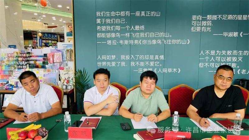 主持會(huì)議的七月份值班會(huì)長(zhǎng)、宣和鈞釉無(wú)機(jī)涂料許昌總經(jīng)銷的張?zhí)┟?,他還分別介紹了七組其他成員,如許之洲機(jī)電公司公司、鄢陵河崗留守兒童學(xué)校、河南柏毅醫(yī)療、哈頓星球田園營(yíng)地等企業(yè)及產(chǎn)品情況。